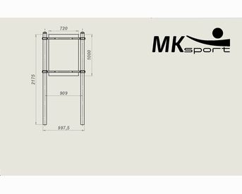 Стенд предназначен для размещения объявлений, схемы спортивной площадки, информации о правилах пользования воркаут-зоной. Каркас стенда изготовлен из опорных труб 89*3 мм и перекладин 32*3 мм. Щит выполнен из влагостойкой ламинированной фанеры и закреплен на перекладинах. Размер самого щита – 70*100 см. Цвет каркаса серый, хомуты бирюзовые.